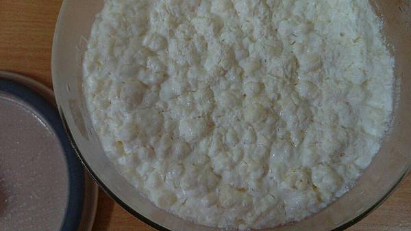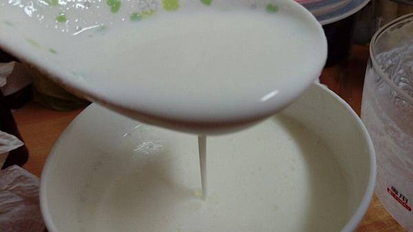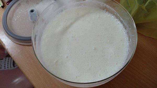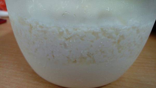 4. 再過一個小時後,上面的奶變成豆腐腦狀,