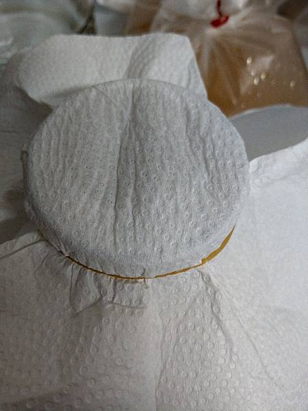 K.為什麼膜會破洞,旁邊還黑黑髒髒der?=>它要呼吸它要呼吸,而且在發酵過程中是會產生CO2,把膜頂上去,沒頂上去就從結構不結實的邊縫穿出,在那個洞口會更容易卡茶垢