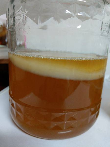 7.茶放涼後就可以放到培養瓶裡+菌膜/菌液囉!!!